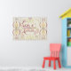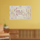 Arte para parede com uma interpretação caprichosa do nosso tema Love Anyway em tons de rosa e vermelho com embelezamentos ousados, listras e flores. TEXTO: "Love Anyway"