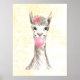 Que adição fofa para o quarto da sua criança ou decoração da nursery. Uma bela impressão em aquarela de uma lhama com delicadas flores cor-de-rosa em um fundo texturizado amarelo claro é uma doce adição para qualquer quarto.