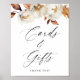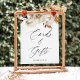 Cartões de casamento florais russos e cartazes de presentes com aquarela caem flores e folhagem em tons de marfim, creme, marrom e laranja-ferrugem. O elegante design floral de outono é complementado por um roteiro de caligrafia moderno. Personalize os cartões de casamento e o sinal de presentes com um obrigado curto, mensagem ou texto personalizado. Os cartões florais de casamento e o sinal de presentes no outono são perfeitos para o seu casamento outono, chá de panela, chá de fraldas, festa de aniversário ou evento especial. Projetado para coordenar com a nossa coleção de casamento Rustic Autumn Floral.