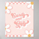 Cartões e presentes, placa de Chá de fraldas Groovy com cheque rosa e margaridas.