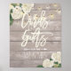Mesa de presente de casamento / Cartões e Ofertas de Poster de Sinais de Casamento - Flores de Hydrangea de Lindas Aquarelas Brancas Elegantes e Luzes de Cordas no Fundo da Madeira Rústica. Um Design Perfeito Para O Seu Grande Dia! Todo Estilo De Texto, Cores, Tamanhos Podem Ser Modificados Para Ajustado Das Suas Necessidades.