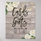 Mesa de presente de casamento / Cartões e Ofertas de Poster de Sinais de Casamento - Flores de Hydrangea de Lindas Aquarelas Brancas Elegantes e Luzes de Cordas no Fundo da Madeira Rústica. Um Design Perfeito Para O Seu Grande Dia! Todo Estilo De Texto, Cores, Tamanhos Podem Ser Modificados Para Ajustado Das Suas Necessidades.