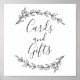 Placa de casamento "Cartões e presentes" com elementos botânicos a preto e branco. Entre em contato comigo, por favor, se precisar de itens adicionais.