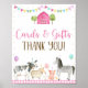 Este sinal bonito será um excelente adicional para a decoração do seu partido. A design apresenta animais de fazenda aquosos com balões coloridos e falsos tecidos de papel dourado confetti.