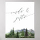 Guie seus hóspedes com estilo usando este sinal de "Cartões e Presentes" da coleção Timberline pela Redwood & Vine Design Co. Apresentando um script manuscrito e uma montanha de aquarelas cênicas e design de florestas, este sinal impresso ou imprimível 8x10 é ideal para casamentos ao ar livre, inverno e minimalistas rústicos. Coloque na sua mesa de boas-vindas ou de presentes um toque de acabamento polido que reflita seu ambiente natural.