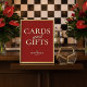 Adicione um toque de elegância eterno à sua mesa de presentes com este Velho Cartões Vermelhos e Sinal de Casamento de presentes. Com caligrafia clássica em fundo vermelho ousado e rico, este cartaz complementa uma estética formal de casamento com sofisticação e graça. Mostre-o em uma mala ou em um quadro na sua recepção para direcionar graciosamente os convidados para deixar cartas e presentes no estilo.