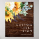 Este cartão de madeira de girassol country ousado e presente personalizado em pôster é perfeito para o seu casamento simples e clássico boho de verão no quintal do celeiro. O design apresenta um buquê de girassóis amarelos dourados em aquarela vintage e laranja rústico, folhagem de eucalipto verde-salvia moderno e elegante, e uma rosa marfim branca. O design é ideal para um casamento casual ao ar livre com folhagem de outono minimalista. Por favor, sinta-se à vontade para entrar em contato conosco com qualquer dúvida sobre o design do produto; votos de felicidade!