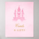 Placa de entrada para chá de bebê "Cartões e Presentes" de conto de fadas azul em rosa e dourado, com floreios tipográficos lindos. Perfeito para a pequena princesa a caminho para um chá de bebê de menina.