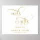 Um sinal de caligrafia simples, elegante e dourado é ideal para o seu chá de noiva ou de casamento. O texto moderno, mas elegante, é escrito em folha de ouro falso, e o texto "obrigado" pode ser personalizado, então, se quiser, pode escrever seus nomes e data do casamento.