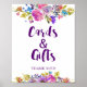 Este cartão de jardim roxo ameixa & presentes sinal de casamento é perfeito para um casamento com tema floral. O design apresenta flores magenta brilhante, rosa, roxo ameixa e azul, e uma linda fonte de letra cursiva em negrito. A linha de texto na parte inferior do sinal pode ser personalizada com a data, os nomes da noiva e do noivo, ou uma mensagem curta como "Obrigado". Criado com carinho por Miriam na Fresh & Yummy Paperie. Para itens coordenados, visite minha loja Zazzle: