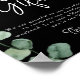 Este cartão preto de eucalipto minimalista e sinal de presentes é perfeito para um casamento ou chá de panela rústico. A design apresenta uma bela fonte caligráfica e uma aquarela verde eucalipto em fundo escuro. Faça a linha de texto na parte inferior da placa sua incluindo a data, os nomes da noiva e do noivo ou uma mensagem curta como "Obrigado". Esta placa pode elogiar um casamento, qualquer evento ou festa.