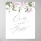 Avise aos seus hóspedes onde deixar seus presentes com este símbolo elegante, com flores roxas e verde.