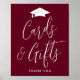 Sinal de festa de formatura moderno com ilustração de um boné de formatura branco no topo com "Cartões e presentes" exibido em um script de caligrafia branca sobre fundo burgundy (ou cor de sua escolha). Personalize o simples poster de graduação com seu texto personalizado na parte inferior (mostrado atualmente com "Obrigado"). O sinal de festa de formatura de marrom é perfeito para formandos segundos graus e universitários.