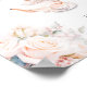 Este letreiro de mesa é adornado com delicados padrões florais rosados, estabelecendo um tom romântico e sofisticado para o evento.