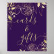 Este poster apresenta pedras e folhagem douradas num estilo de desenho de linha moderno e mínimo sobre fundo sólido. "Cartões e presentes" na fonte dourada correspondente apresenta uma tipografia cursiva escrita à mão. Esta placa é a forma perfeita de deixar os convidados do casamento ou do chá saberem onde deixar seus presentes.