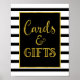 Cartões e presentes, chá de fraldas de casamento ou de poster de placa de em um padrão clássico de listras preto e branco com texto glamouroso de ouro antigo.
