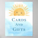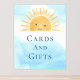 Este Sinal de Chá de fraldas Cartões e Ofertas apresenta uma aquarela amarela sorrindo sol, tipografia na moda e um fundo azul-céu. Original Watercolor © Michele Davies.