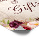 Cartões Florais Rustic Wood Burgundy e Sinal de Presente Poster. (1) O tamanho padrão é 8 x 10 polegadas, você pode alterá-lo para um tamanho maior. (2) Para mais personalização, clique no link "personalizar mais" e use nossa ferramenta design para modificar esse modelo. (3) Se precisar de ajuda ou itens correspondentes, entre em contato comigo.