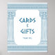 Símbolo de mesa do partido Elegante Toga 'Cards and Gifts', com pilares elegantes do templo e padrão grego medidor em azul. Perfeito para casamentos, noivados, festas de formatura, aniversários, salvar as datas, solteira e festas de aniversário. Verifique a coleção correspondente para COORDENAR ITENS. Arte original de PUPSIKU STUDIO. Produtos exclusivos 100%.