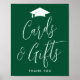 Sinal de festa de formatura moderno com ilustração de um boné de formatura branco no topo com "Cartões e presentes" exibido em um script de caligrafia branca em um fundo verde (ou cor de sua escolha). Personalize o simples poster de graduação com seu texto personalizado na parte inferior (mostrado atualmente com "Obrigado"). O sinal de festa de formatura verde é perfeito para formandos segundos graus e universitários.