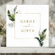 Este cartaz de casamento e presentes apresenta folhagem tropical verde-aquarela, folhas de palmeiras, folhas de bananas com um quadro de retângulo dourado. É perfeito para um casamento de praia, verão ou destino. A cor de fundo pode ser alterada. >>> Veja toda a coleção << https://www.zazzle.com/collections/tropical_foliage_gold_collection-119316977990783186