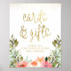 Um sinal dourado de presentes florais e cartões para o seu evento de chá de panela. Este design apresenta uma elegante letra de escrita, folha de ouro falsa e um buquê floral cor-de-rosa. Cartões se revertem a um belo padrão das mesmas flores de aquarela. Visualize a coleção vinculada nesta página para o papel de carta de chá de panela correspondente ou visite nossa loja para ver mais sinais de chá de panela.