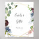 Este cartão geométrico de ouro e sinal de presentes é perfeito para um casamento no inverno ou chá de panela. O elegante design apresenta marinho de aquarela, cor-de-rosa-pincelada e flores de sombra de vinho com detalhes artísticos lápis. Faça a linha de texto na parte inferior da placa sua incluindo a data, os nomes da noiva e do noivo ou uma mensagem curta como "Obrigado". Esta placa pode elogiar um casamento, qualquer evento ou festa.
