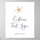 Este moderno sinal de texto náutico e de presentes é perfeito para um casamento de cruzeiro ou praia. O simples design apresenta estrelas douradas. Personalize o texto para dizer o que quiser! Esta placa pode ser usada para cartas e presentes, livro de hóspedes, hashtag de casamento, favores, bar de sobremesa — qualquer coisa! Pode ser usado para um casamento, chá de panela, janto de ensaio ou qualquer evento. A linha de texto na parte inferior da placa pode ser personalizada com a data, os nomes da noiva e do noivo, ou uma mensagem curta como "Obrigado". Se quiser vários sinais de coordenação, personalize e adicione ao carrinho um de cada vez.