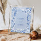 Este design inspirado na chinesice apresenta florais botânicos elegantes e folhagens em azul delft e branco. Personalize o convite com seus detalhes e se desejar reorganizar ainda mais o estilo e a colocação do texto, pressione o botão "Clique para personalizar ainda mais".