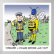 Engraçado Cartoon da Polícia de Trânsito do Reino Unido com um policial vestido de vespa porque ele está prestes a operar um "ferrão".