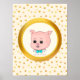 Um desenho animado de porco Chanchi com bolinhas ouros no Poster de fundo bege claro. Um porco é um símbolo de abundância, prosperidade e bem-estar. Faz um presente excelente para todos!