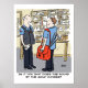 Um carteiro está carregando seus tacos de golfe em um saco de golfe sobre seu ombro. Outro carteiro pergunta se ele é o carteiro que tem uma rodada perto do campo de golfe. Cartoon engraçado do cartunista britânico Nigel Sutherland.