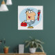 A cartoon style mechanic standing with some tools. This design looks really effective on these Poster