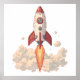 Poster Cartoon Rocket Launching with Fiery Exhaust