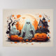 Poster Casa Assombrada, Fantasma e Pumpkins Halloween