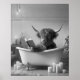 "arte do banheiro de vaca da Highland", "poster da vaca da Highland escocesa", "leitura em impressão em banho animal", "touro com chifres bonitinhos", "fazendeiro de fazenda de caubói branco", "humor humorístico humor humorístico", "banheira de banheira branca e preta", "fotografia relaxada e calma", "impressões de fotos de vaca da Highland"