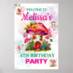 Fadas mágicas bonitas de floresta e festa de aniversário de cogumelos pendurando poster mudam o texto você mesmo quando você pede. Este sinal será facilmente convertido para os tamanhos 20 x 30 ou 24 x 36
