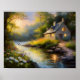 Esta pintura serena de uma casa de pedra aninhada nos bosques ao longo de um rio que flui suavemente captura a tranquilidade e o charme da natureza. Com texturas ricas, tons terrosos e reflexos de água serenos, traz uma atmosfera acolhedora e rústica para qualquer espaço. Perfeita para decoração de cabana, amantes da natureza ou qualquer pessoa atraída por cenas idílicas da floresta.