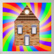 Uma casa de tijolos cercada por cores muito coloridas do arco-íris. Esta design parece realmente eficaz nestes Poster