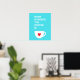 Uma caneca de café branca com coração vermelho, está sobre um fundo de turquesa. O ditado "lar é onde está o café" lembra-nos que enquanto houver café, há algo para agradecer!