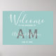Poster de boas-vindas modernas minimalistas com fontes em branco e cinza. Personalize com uma rubrica/monograma do casal e nomes próprios/data do casamento como sobreposição em fundo azul da casca do ovo.