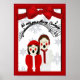 Uma bela ilustração gráfica da artista/designer Charmaine Paulson de um casal de caroler em uma poster de Natal.