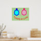 Este poster apresenta uma imagem fofa de uma tartaruga azul e uma tartaruga rosa lado a lado. O casal bonito só tem olhos para uns aos outros e pequenos rabos bonitos. A casca da tartaruga é feita de dois tons de rosa para a fêmea e azul para o macho. Estas caras estão realmente apaixonadas e fariam um presente excelente para os casais.