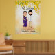 O casal do casamento do sul da Índia Tamil Telugu. Cores quentes com ilustração de casal índio giro e flores amarelas suspensas.