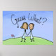 Perfeito em anunciar uma cerimônia de noivado, casamento ou compromisso com o seu parceiro, este design apresenta uma bela e doce imagem de um casal lésbico com o texto "adivinhem o quê".