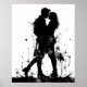Casal jovem abraçado em uma Silhueta Beija, Negra e Branca