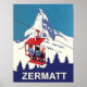 Casal num elevador de esqui em Zermatt, poster de viagens vintage