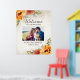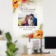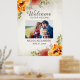 Elegante pôster de boas-vindas em aquarela laranja queimado floral para o seu casamento de outono. Este sinal é personalizado com uma foto especial de noivado e texto, "Bem-vindos ao nosso casamento". O nome da noiva e do noivo e a data do casamento são impressos na parte inferior.