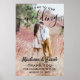 Dê as boas-vindas aos convidados do casamento na sua cerimônia ou recepção com um elegante pôster personalizado de 24"x36". A imagem e todo o texto são fáceis de personalizar. (DICA DE COLOCAÇÃO DE IMAGEM: Uma maneira fácil de centralizar uma foto exatamente como você deseja é cortá-la antes de fazer o upload para o site da Zazzle.) O design moderno minimalista preto e branco apresenta uma imagem de sua escolha, caligrafia elegante com estilo manuscrito, tipografia vintage elegante e mensagens personalizáveis que dizem "bem-vindos ao nosso para sempre" e "obrigado por celebrar conosco". Este letreiro de casamento é uma maneira elegante de compartilhar uma foto do noivado, ao mesmo tempo em que adiciona um toque personalizado às decorações do seu dia especial. Parabéns à noiva e ao noivo! A foto do exemplo é de Tim