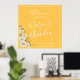 design de poster de boas-vindas do casamento bonito apresenta margarida branca canto sobre fundo amarelo daffodil com blocos de texto personalizáveis brancos em fontes modernas